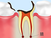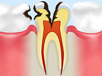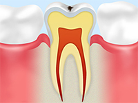 | 血管や神経が集まる部分にまで虫歯が達し、何もしなくてもズキズキとした痛みを感じるようになります。 |