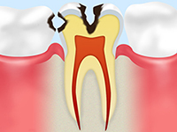 | 基本的にC1と同様の処置を行います。削る量が増えるため、詰め物で患部をしっかりと保護する必要があります。 |