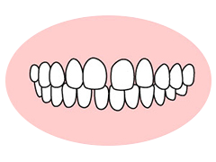 | いわゆる「すきっ歯」です。歯と歯の間にすき間があるため、食べ物がはさまりやすく、見た目にもよくありません。 |